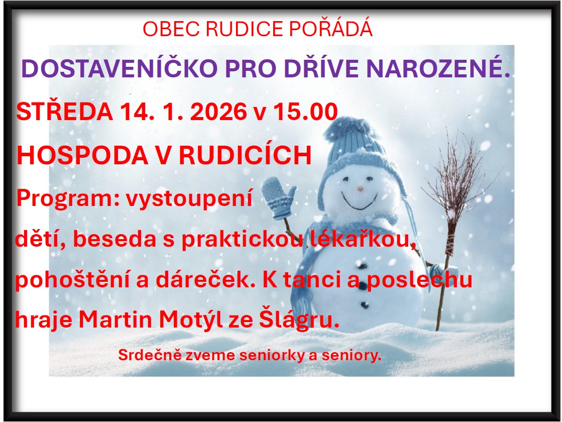 Obec Rudice zve 14. ledna 2026 v 15.00 seniory na program.