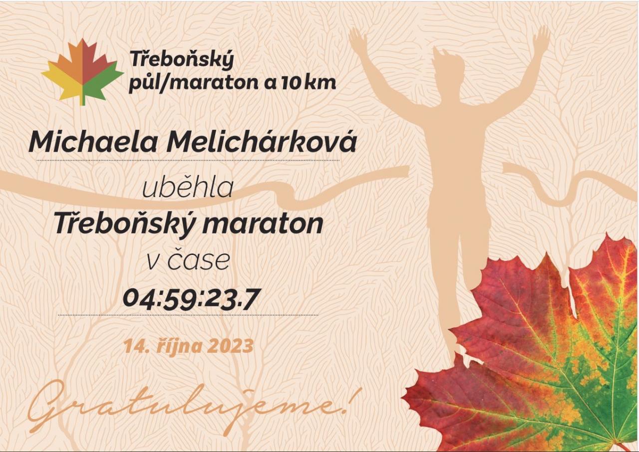 Míša Melichárková se věnuje naplno běžeckému sportu. A výsledky jsou znát! Úspěšně zvládla uběhnout třeboňský maraton. Ke gratulacím se připojuje i Obec Rudice.