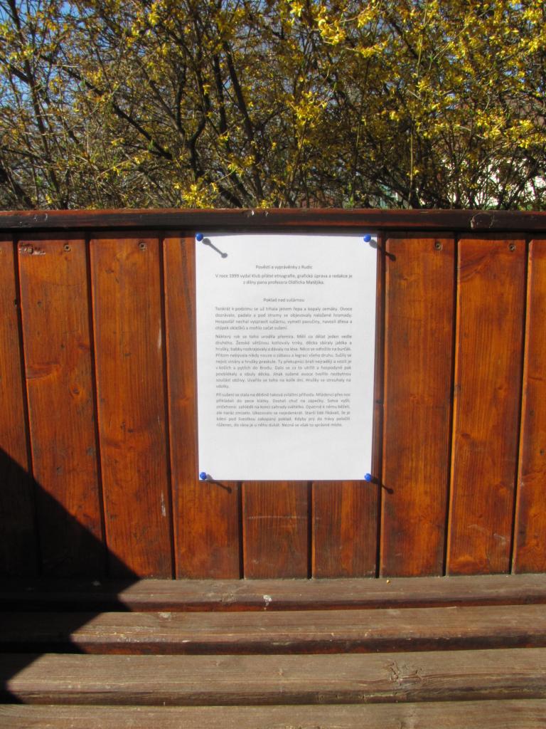 Trávit Velikonoce tradičním způsobem letos nebudeme. Počasí přeje vycházkám a dalším venkovním aktivitám. Zpříjemněte si Vaše toulky přírodou četbou několika výše zmíněných pověstí. Najdete je na různých místech v Rudicích, fotografie Vám napoví. Nezapomínejte používat ochranné prostředky. Přejeme Vám pěkné svátky jara, hodně zdraví a veselou mysl.