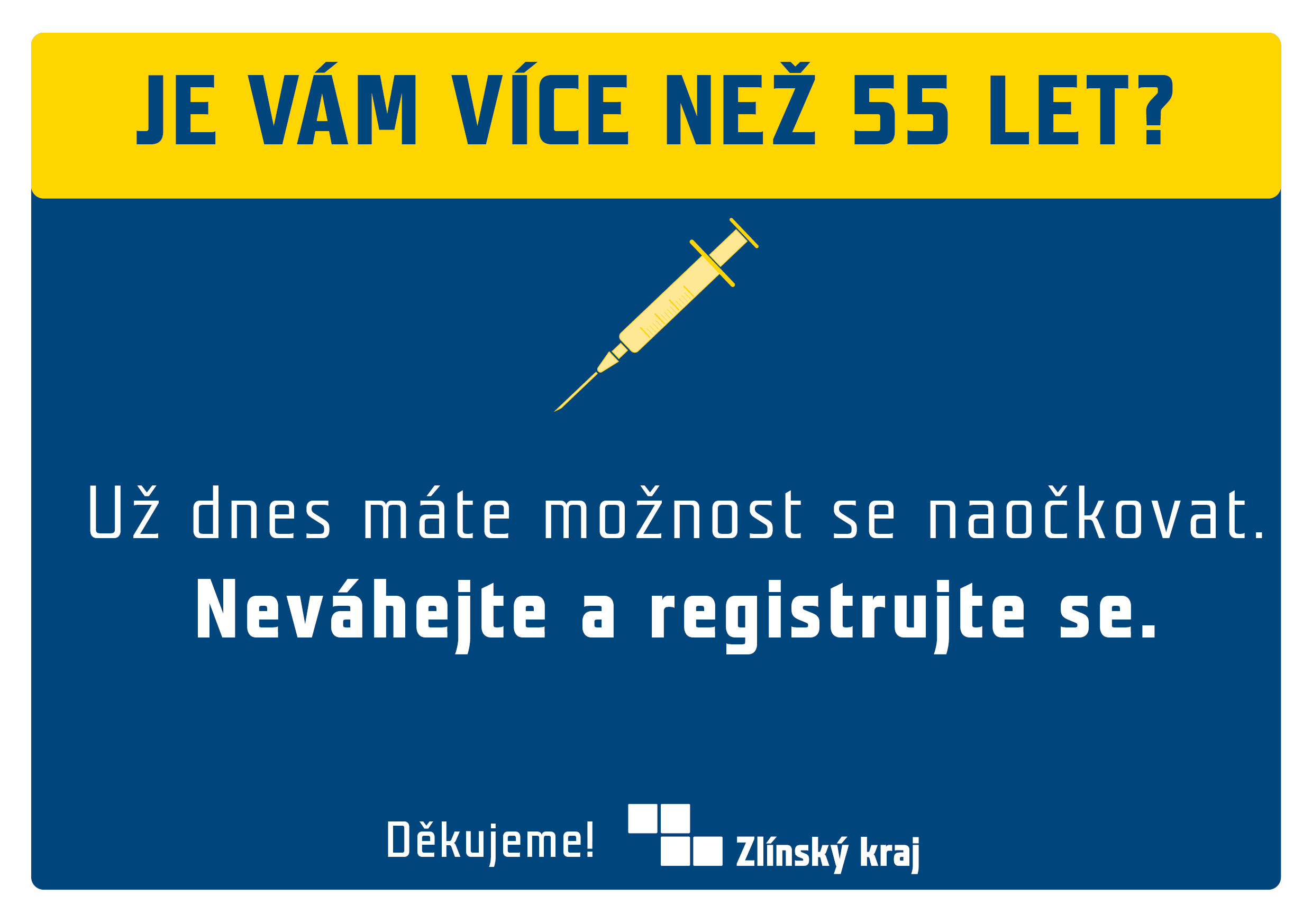 Registrace k očkování proti Covid-19 se otevřela také zájemcům od 55 let Nejrychleji se lidé mohou očkovat v některém z 8 očkovacích center, která ve Zlínském kraji jsou. K očkování by se zájemci měli registrovat co nejdříve. V brzké době se otevře centrální registr také dalším věkovým skupinám