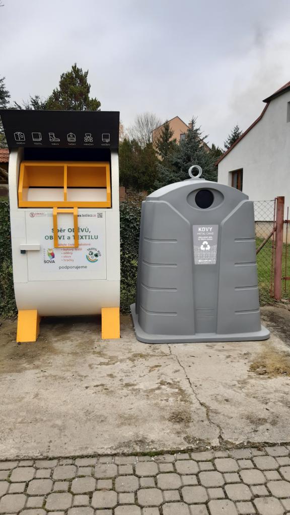 V prostoru po bývalé zastávce autobusu u návsi jsou umístěny dva nové kontejnery. Kontejner "TUČŇÁK" slouží ke sběru oděvů, obuvi, knih, hraček - vše čisté, použité k dalšímu využití, vložené do igelitových tašek. Staré a poškozené oblečení patří do popelnice.