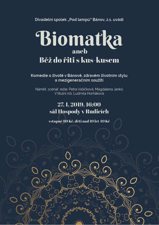 Divadelní spolek „Pod lampú“ Bánov, z.s. uvádí Biomatka aneb Běž do řiti s kus-kusem