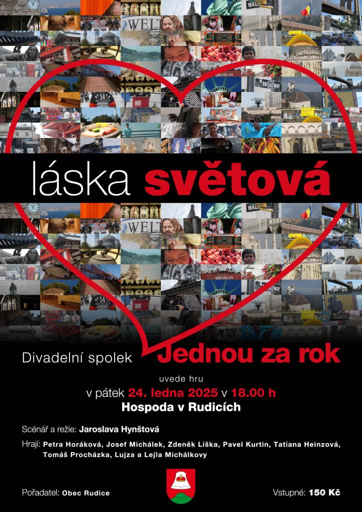 Divadelní spolek Jednou za rok Luhačovice odehraje představení s názvem Láska světová. ¨