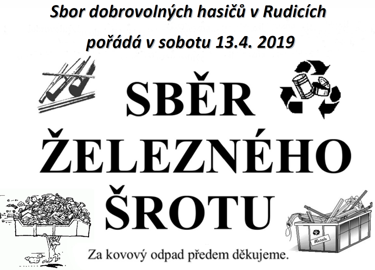 SDH v Rudicích pořádá v sobotu 13. 4. sběr železa.