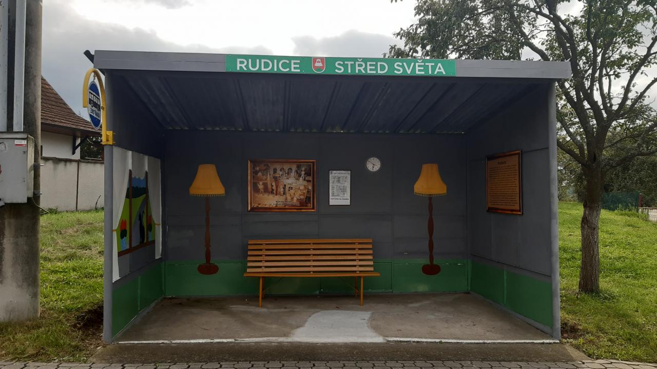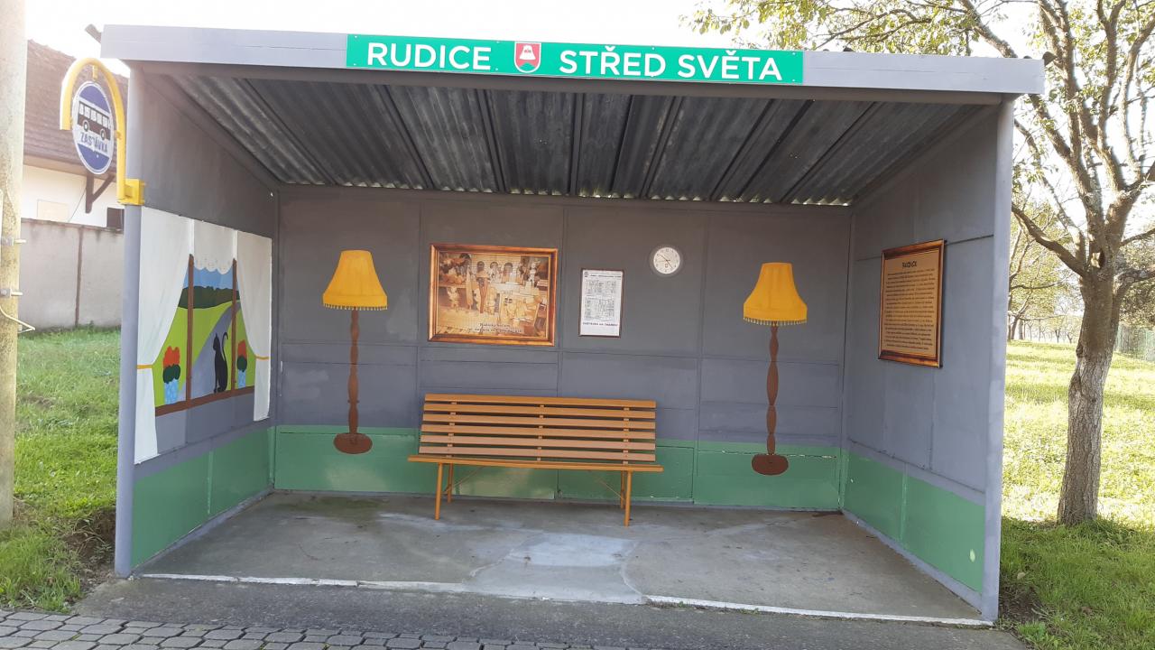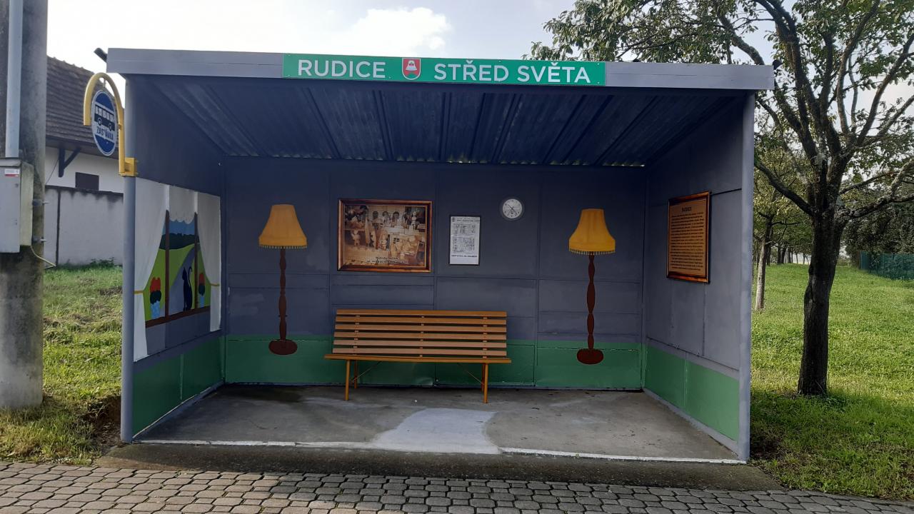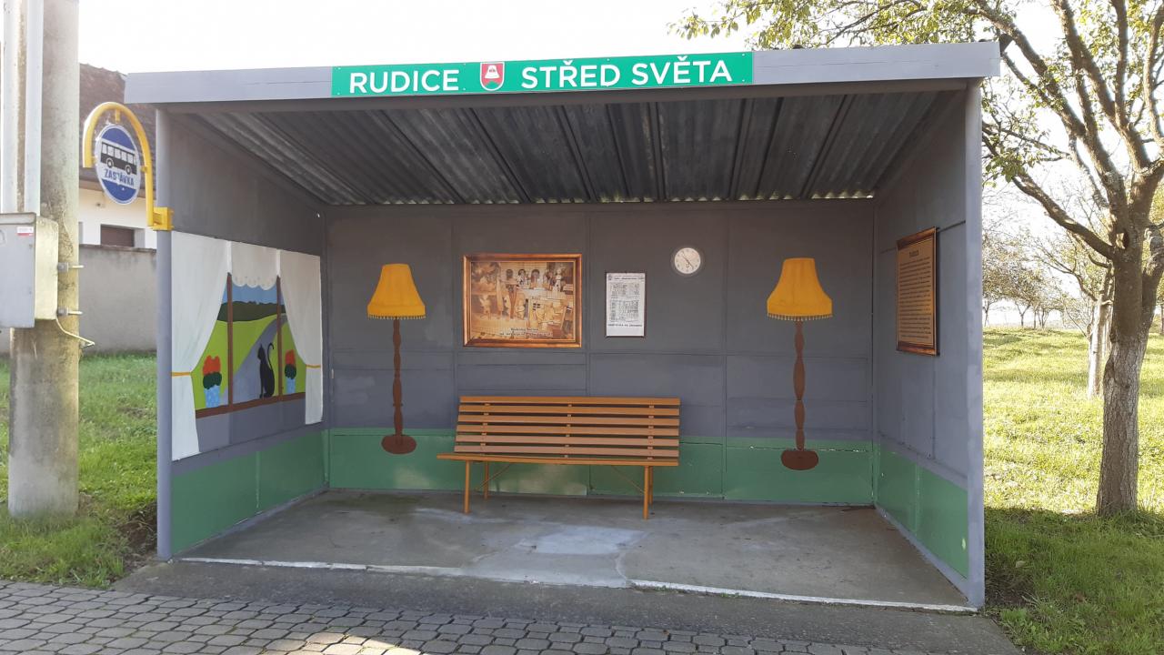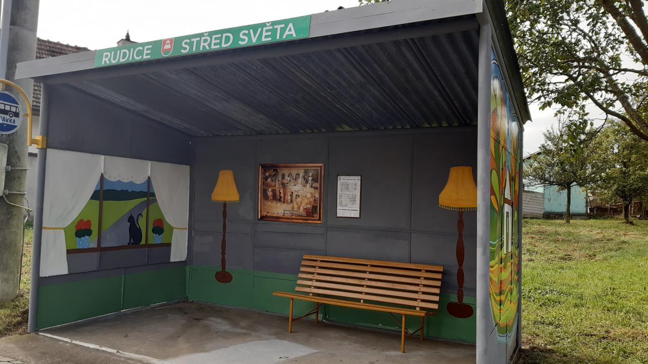 Stará a dobrá plechová zastávka v Rudicích se díky umění a ochotě paní malířky Laďky Kotačkové stala pěkným místem v naší obci.