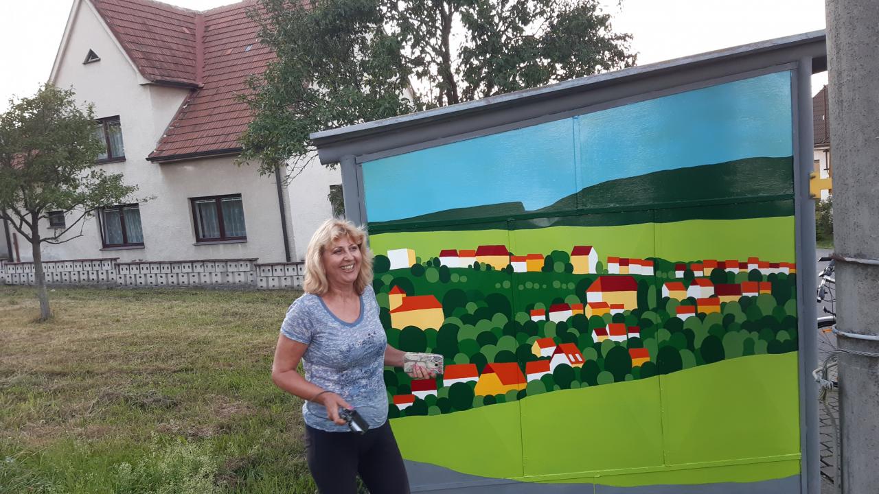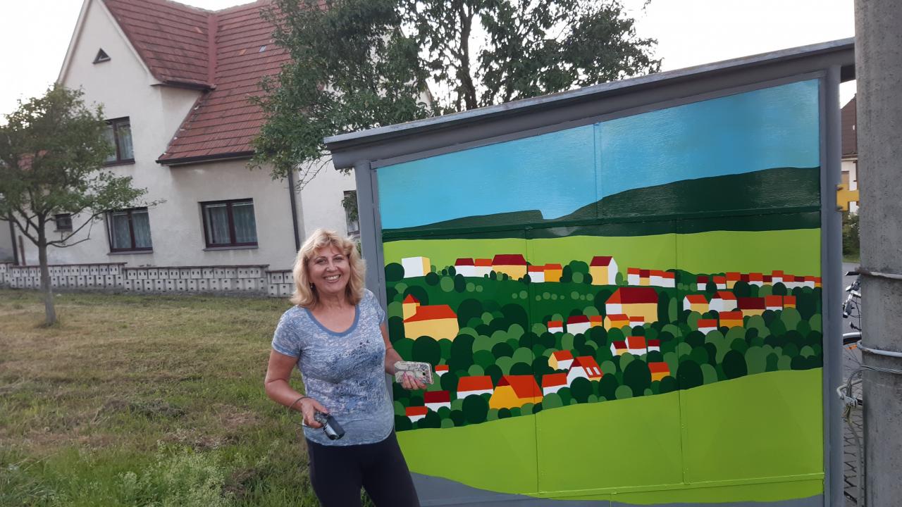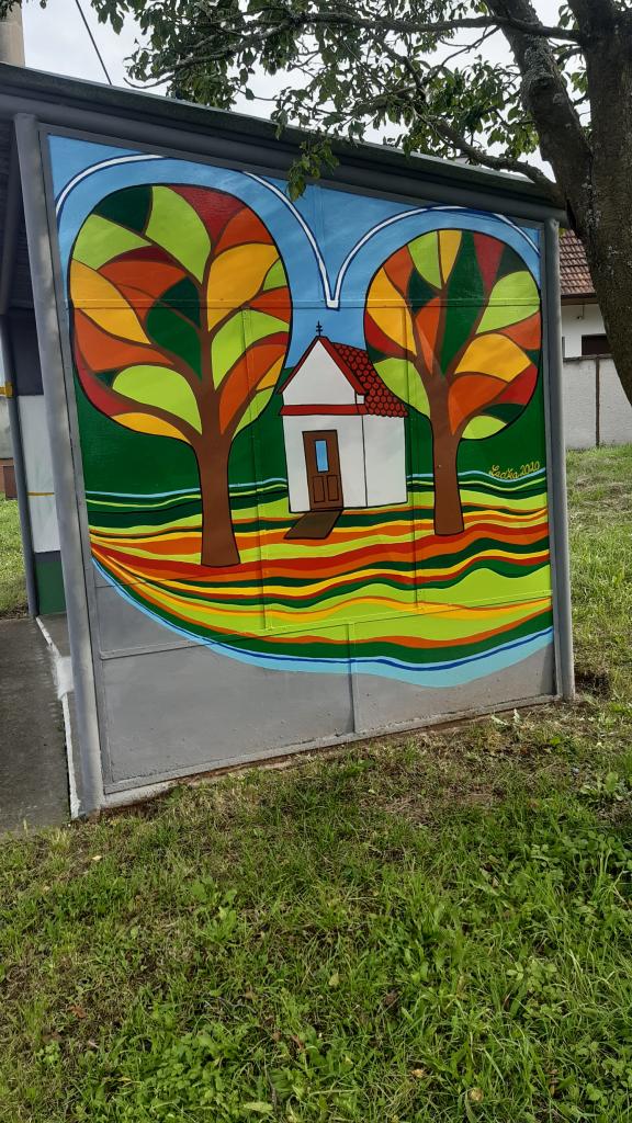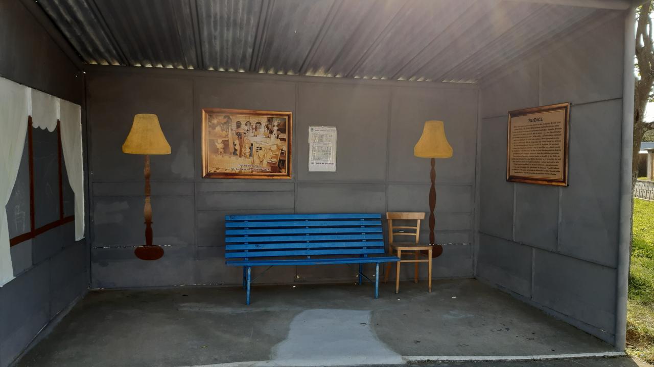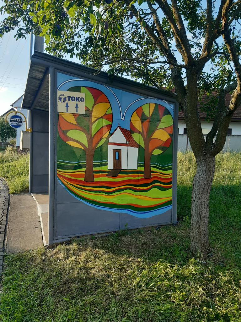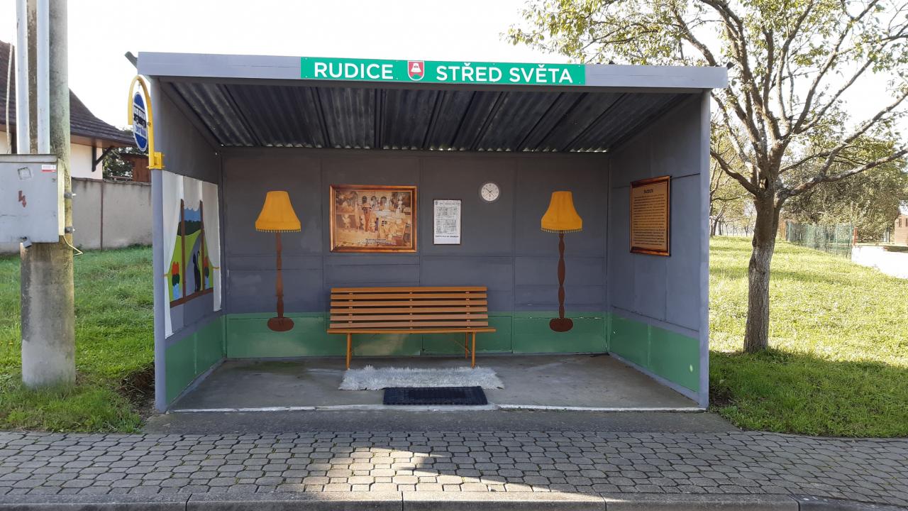 Stará a dobrá plechová zastávka v Rudicích se díky umění a ochotě paní malířky Laďky Kotačkové stala pěkným místem v naší obci.