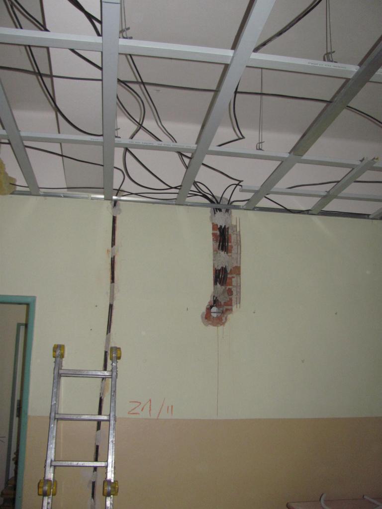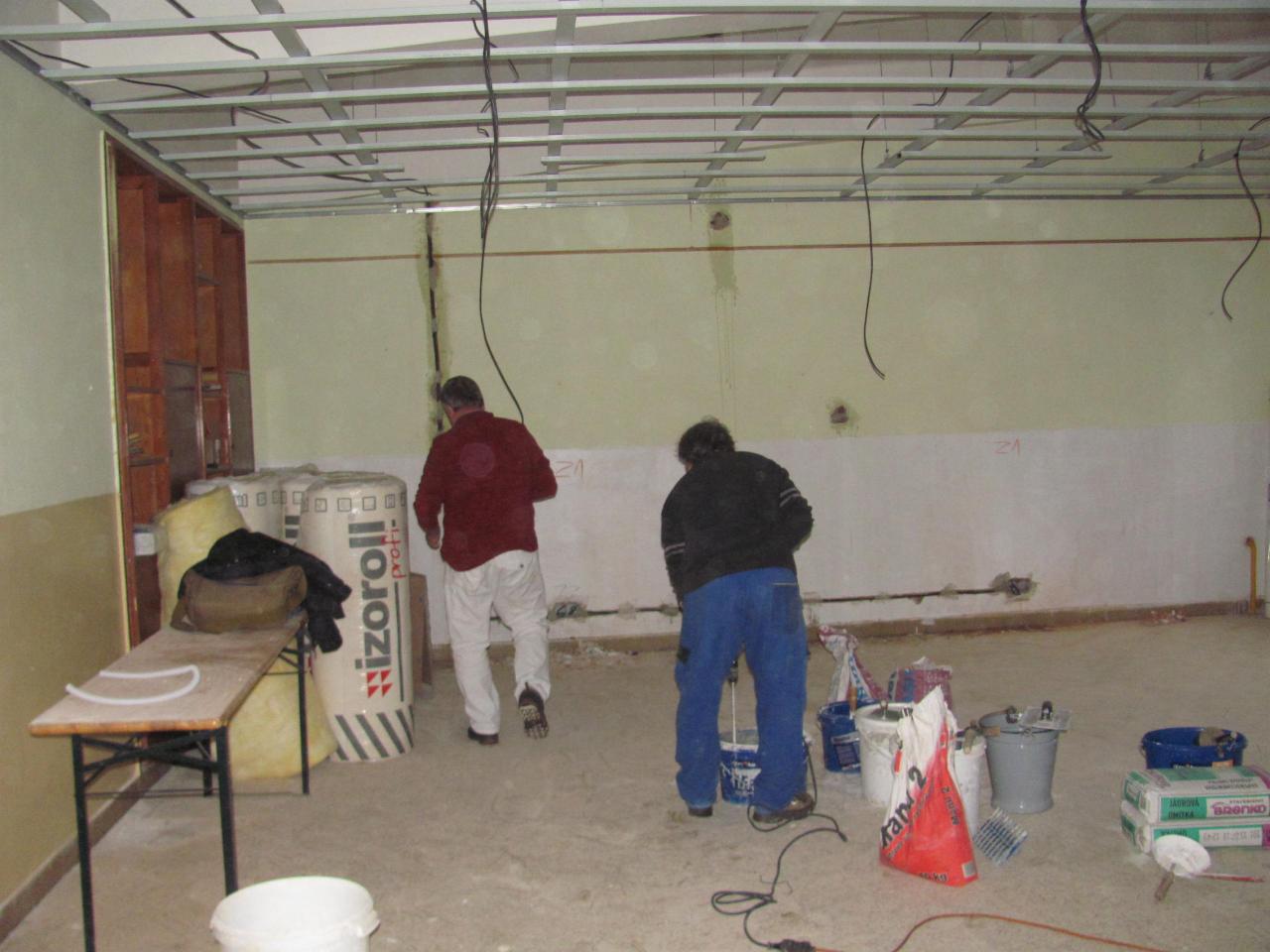 2. 1. 2020 začínáme s opravami elektroinstalace a se snižováním stropu v knihovně.