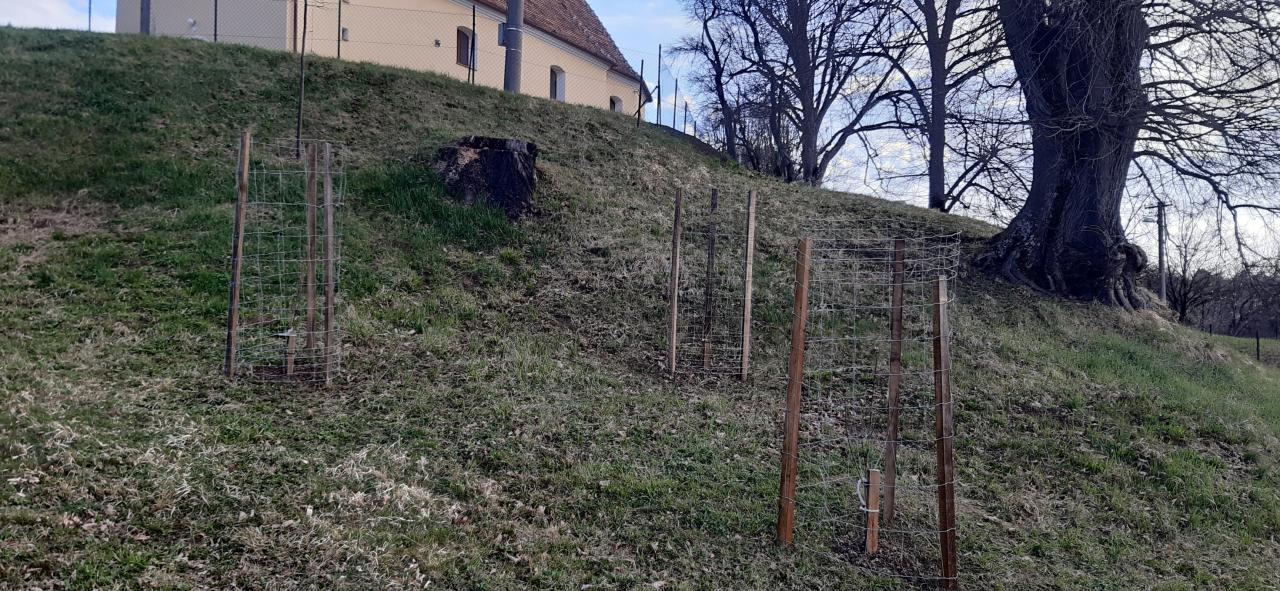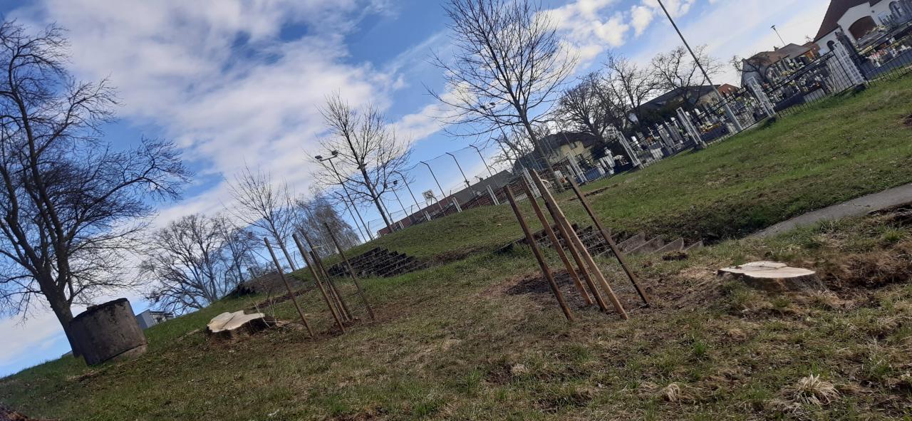 Obecní zaměstnanec a brigádníci v obci vysadili 4 slivoně, 2 višně a 3 dříny - lokalita u hřbitova.